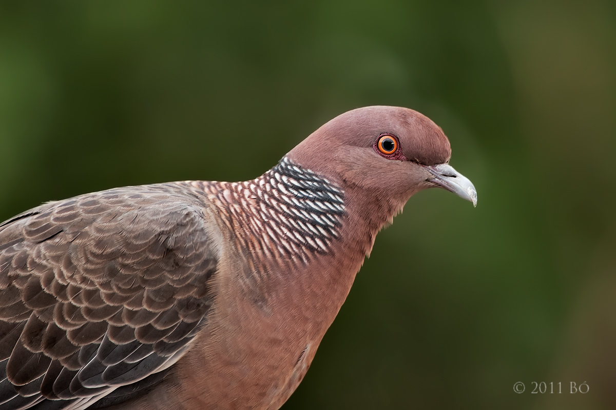NOMBRES POPULARES: Paloma picazuró, Paloma turca ( en vuelo se aprecia una MEDIA LUNA BLANCA sobre las cubiertas ) y, en inglés, Picazuro pigeon.
