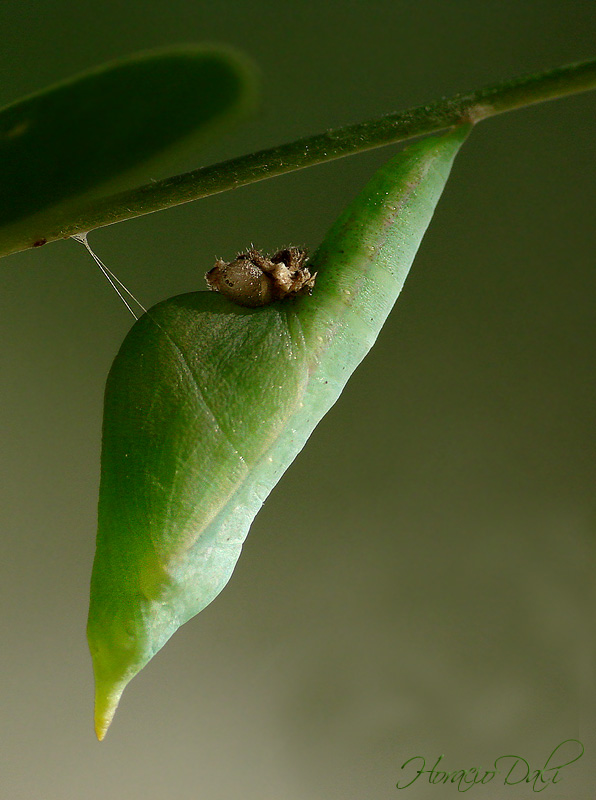 Dice Juan F. Klimaitis en 100 Mariposas Argentinas de Ed. Albatros: “En este período permanecen por fuera inactivas e inmóviles, sin alimentarse. Pero, mientras tanto, es su interior, se producen profundos y maravillosos cambios. Todos sus tejidos, exceptuando el sistema nervioso, se licuan (histolisis) y sufren una serie de transformaciones que darán origen a la mariposa”