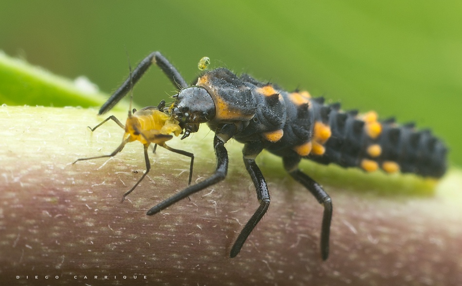 Que momento capturaste y con gran nitidez en donde debe, y a pesar de no estar en foco el pulgón la escena es evidente, felicitaciones!!