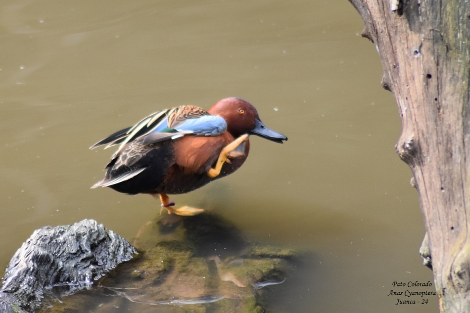 Esta foto la tome en un humedal cerca de Santo Domingo v Región, me ha llamado la atención el anillo, el SAG (Servicio Agricola Ganadero) autoriza el anillamieto de ejemplares para obtener datos de la especie en estado salvaje. La subespecie cyanoptera se distribuye en Chile desde Copiapó hasta el Estrecho de Magallanes, habitando en lagos, lagunas, albuferas,