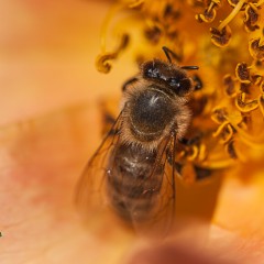 ABEJA POLINIZANDO FLOR DE ALOE VERA