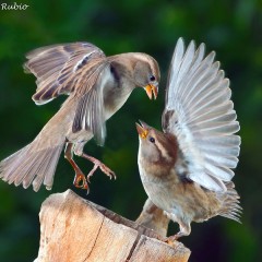 gorriones en conflicto por el alimento