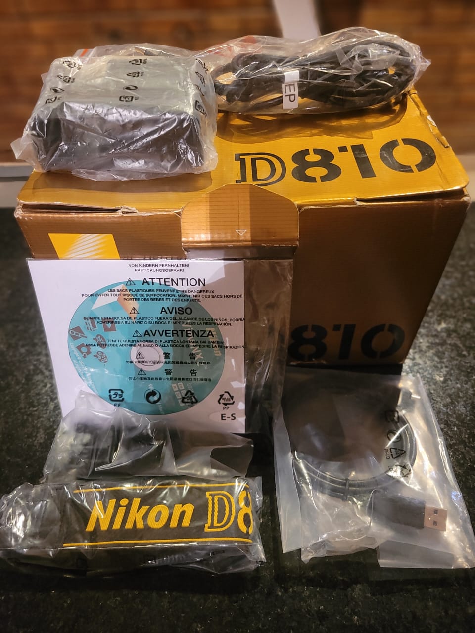 Vendo Nikon D810 con Grip Nikon Original, todo en impecable estado. Cámara muy cuidada. Está completa con caja y manuales de cámara y de grip. Correa nunca usada. Pido $1.550.000 pesos.