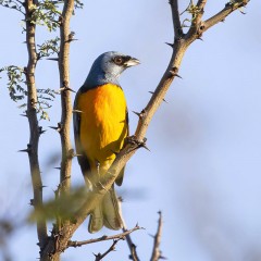 Naranjero (Pipraeidea bonariensis) macho adulto con leucismo parcial.